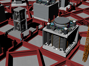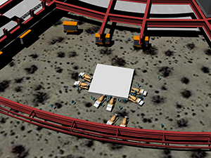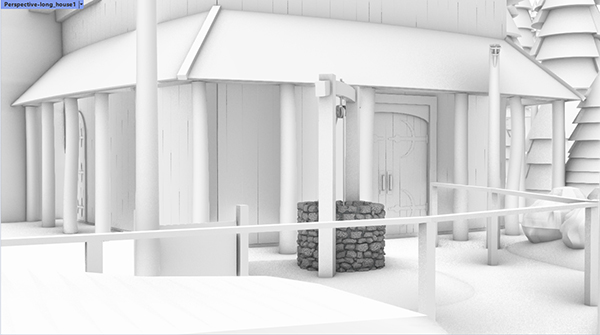 ![]() Early rendering (exterior pre-show/queue) concept model of a theme park attraction. In development, Modeled in Rhino, no imported assets. |