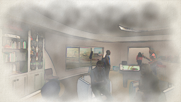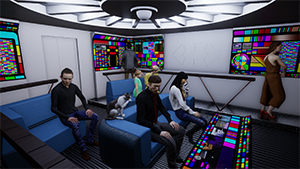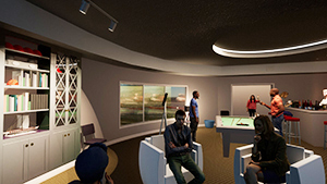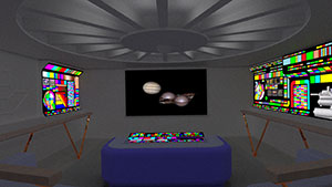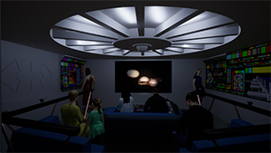 | Concept, Star Ship Home Theater. Modeled in Rhino, graphics from AutoCAD and Photoshop, rendered in Twinmotion. 2023. | |