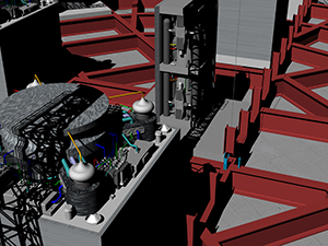 ![]() Early rendering (top) concept model of a theme park attraction. In development, Modeled in Rhino, no imported assets. |