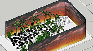 | Two of the many landscapes I developed in 2D, 3D, and physical models. | |