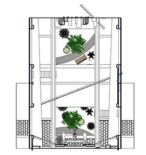 Fukayama's space had a variety of names and designs. Most of the designs were based on the concept of M. C. Escher, gardens on teh wall, stairs on the ceiling, etc., SketchUp, 2017 Legion. | |