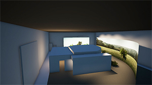 | Concept model, set, recreation room. Model in Rhino, rendering in Twinmotion. | |