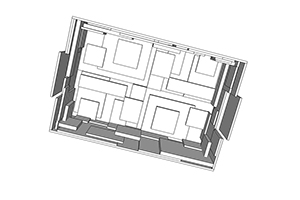 | Everyday Life, this computer massing model was not quite finished when the design of the set changed again. AutoCAD ©; Architectural Desktop, 2002. 2005. | |