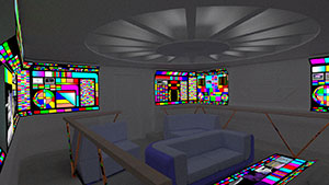 | Concept, Star Ship Home Theater. Modeled in Rhino, graphics from AutoCAD and Photoshop, rendered in Rhino. 2023. | |