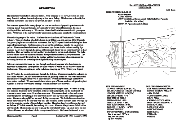 ![]() Scripts and Data Sheet for three attractions for my theme park. 1991. |