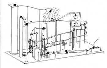 ![]() Wisconsin State Lottery. Rube Goldberg like device. Half AutoCAD ® 2002, half pencil. 2004. |
