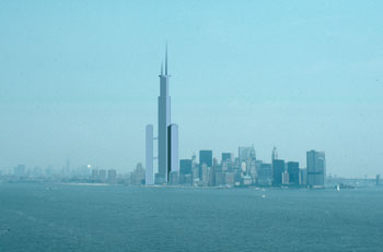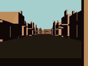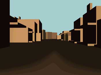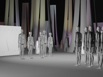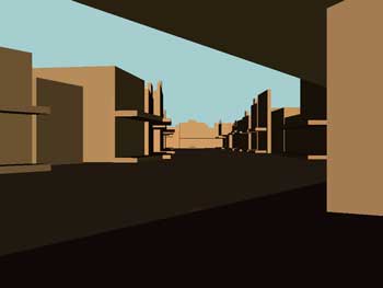 | Everyday Life, this computer massing model was not quite finished when the design of the set changed again. AutoCAD ©; Architectural Desktop, 2002. 2005. | |