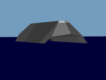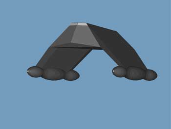 | I did this as a demo in the days before starting Outbreak, to show the possibility of doing more of the Set Design work in 3D. It was determined that 2D was sufficient. Sample ship model. AutoCAD © R12. 1992. |