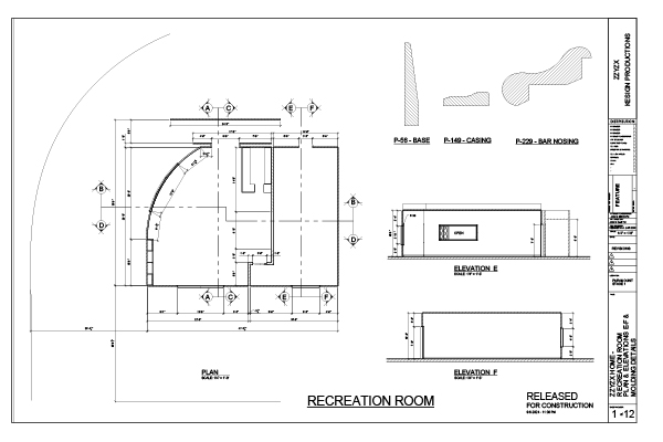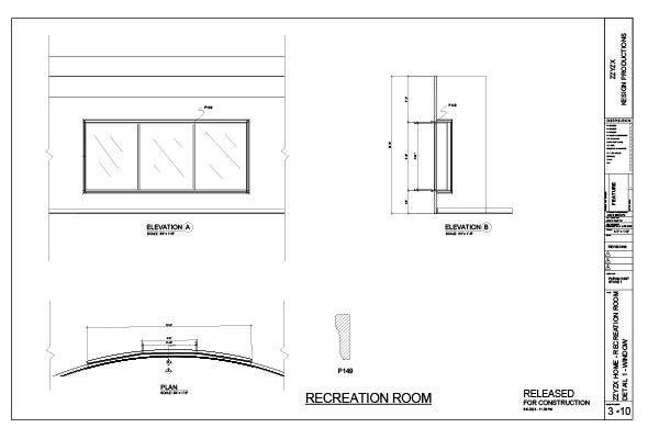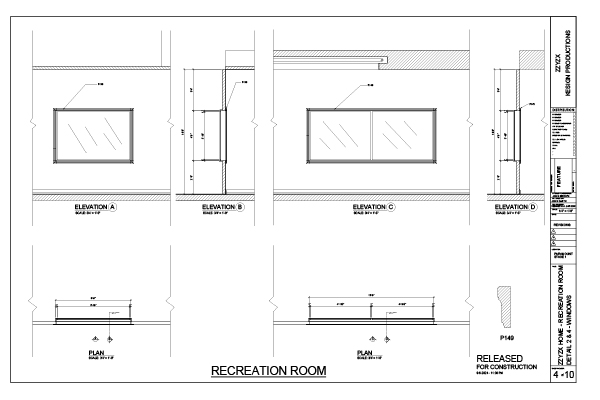![]() Construction drawing in Rhino layout of recreation room, sheet 1. With some effort, I can make these look as good as my AutoCAD drawings, or do them faster in AutoCAD. |