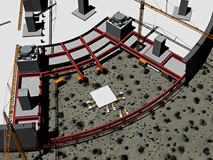 ![]() Early rendering (back corner) concept model of a theme park attraction. In development, Modeled in Rhino, no imported assets. |