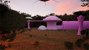 ![]() Early rendering (exterior pre-show/queue) concept model of a theme park attraction. In development, Modeled in Rhino, no imported assets. |