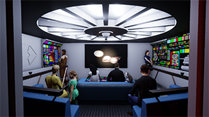| Concept, Star Ship Home Theater. Modeled in Rhino, graphics from AutoCAD and Photoshop, rendered in Twinmotion. 2023. | |