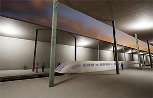 | In Summer 2024, I took an Unreal Engine class. For several projects, we used downloaded assets, but I wanted to make my own in Rhino 8. Left image, I used Procedural Content Generation in Unreal to create the landscape and Rhino for buildings, space craft, and equipment packages. Right image, the Maglev and benches were made in Rhino, the station was modeled in Unreal. Everything is in Centimeters. | |