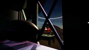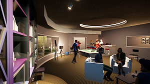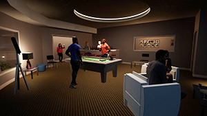 | Concept model, set, recreation room. Model in Rhino, rendering in Twinmotion. | |