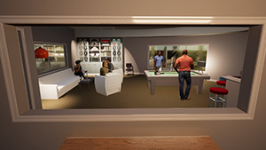 ![]() Early rendering (counter serve restaurant) concept model of a theme park attraction. In development, Modeled in Rhino, no imported assets. |