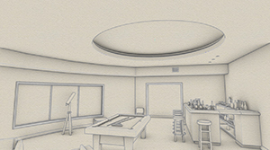 ![]() Early rendering (interior pre-show/queue) concept model of a theme park attraction. In development, Modeled in Rhino, no imported assets. |