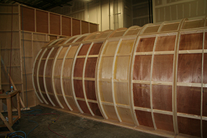 A prop maker friend use to tell me, "Stations and stringers" by which stations are studs in a flat wall, curved beams in a fuselage or hull, or in this case, the rings of the tunnel, stringers are the horizontal parts that hold the stations in place. Almost everything can be broken down this way.