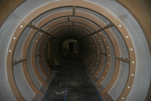 The inside of the tunnel showing the flanges.