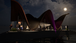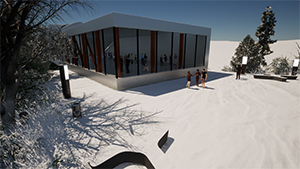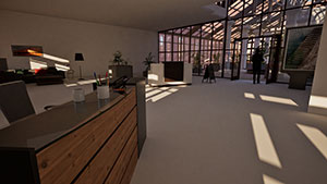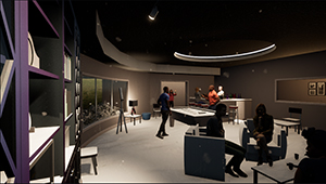 | Concept model, set, recreation room. Model in Rhino, rendering in Twinmotion. | |