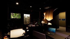 | Concept, Star Ship Home Theater. Modeled in Rhino, graphics from AutoCAD and Photoshop, rendered in Twinmotion. 2023. | |